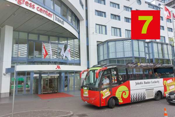 Hop-On Information Wir halten vor dem Marriott Hotel, Kunden Haupteingang. Messeplatz 25, Basel Abfahrtszeiten Bus: Gemäss Fahrplan Hop-Off highlights Ihre Möglichkeiten bei Messe Basel: Architektur Neubau Messe, Herzog & De Meuron Messeturm, zuoberst BarRouge mit Aussicht auf Basel und Umgebung!! Musical-Theater Basel Ab Messe mit Tram Nr. 6 nach Riehen (ca 15min), zur Fondation Beyeler , meistbesuchtes Museum/Galerie der Schweiz! Mehr Information auf der App: